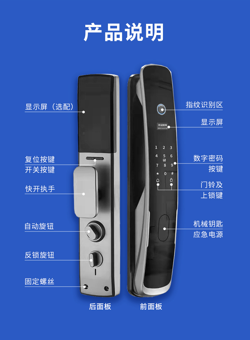 電壓低于6.9V后每次開鎖都會自動報警,報警后門鎖可開鎖200次,超過次數將禁止開鎖,務必在開鎖次數前更換新電池。